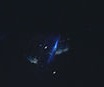 Mission frames 49,50,51,52, all show the spotlight from this craft in operation as it pulls up beside the Hubble Space Telescope and activates light, illuminating Discovery in bright dazzling light.
